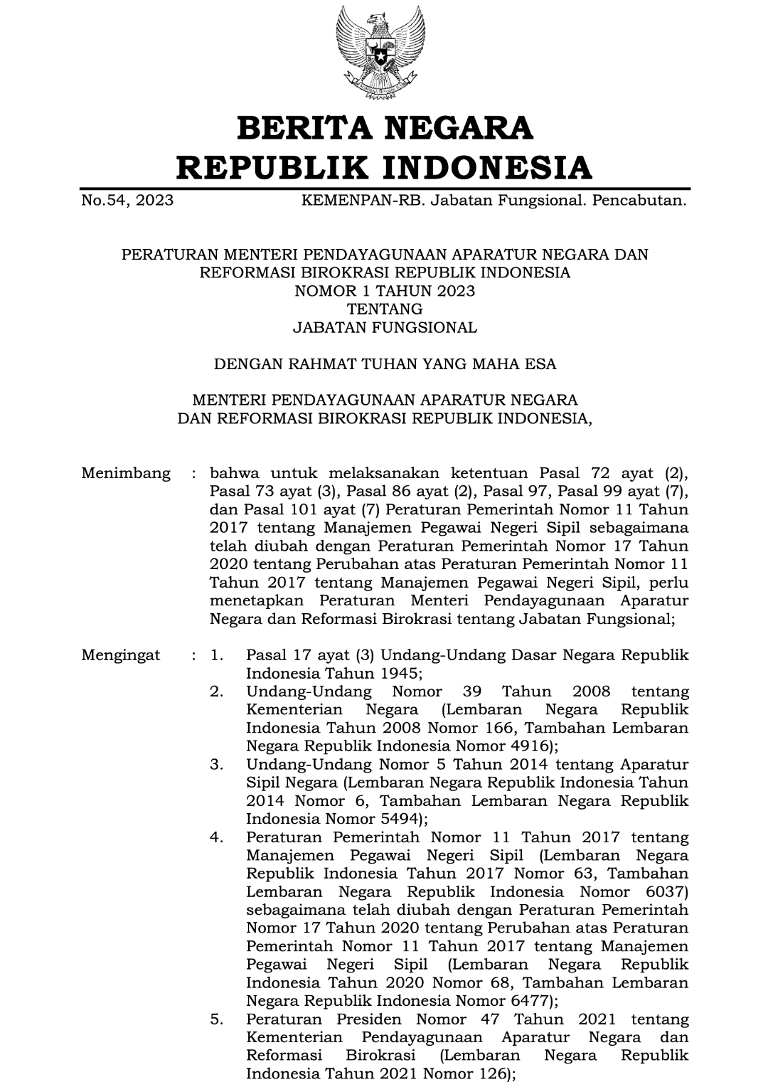 Permepan RB No. 1 Tahun 2023 tentang Jabatan Fungsional